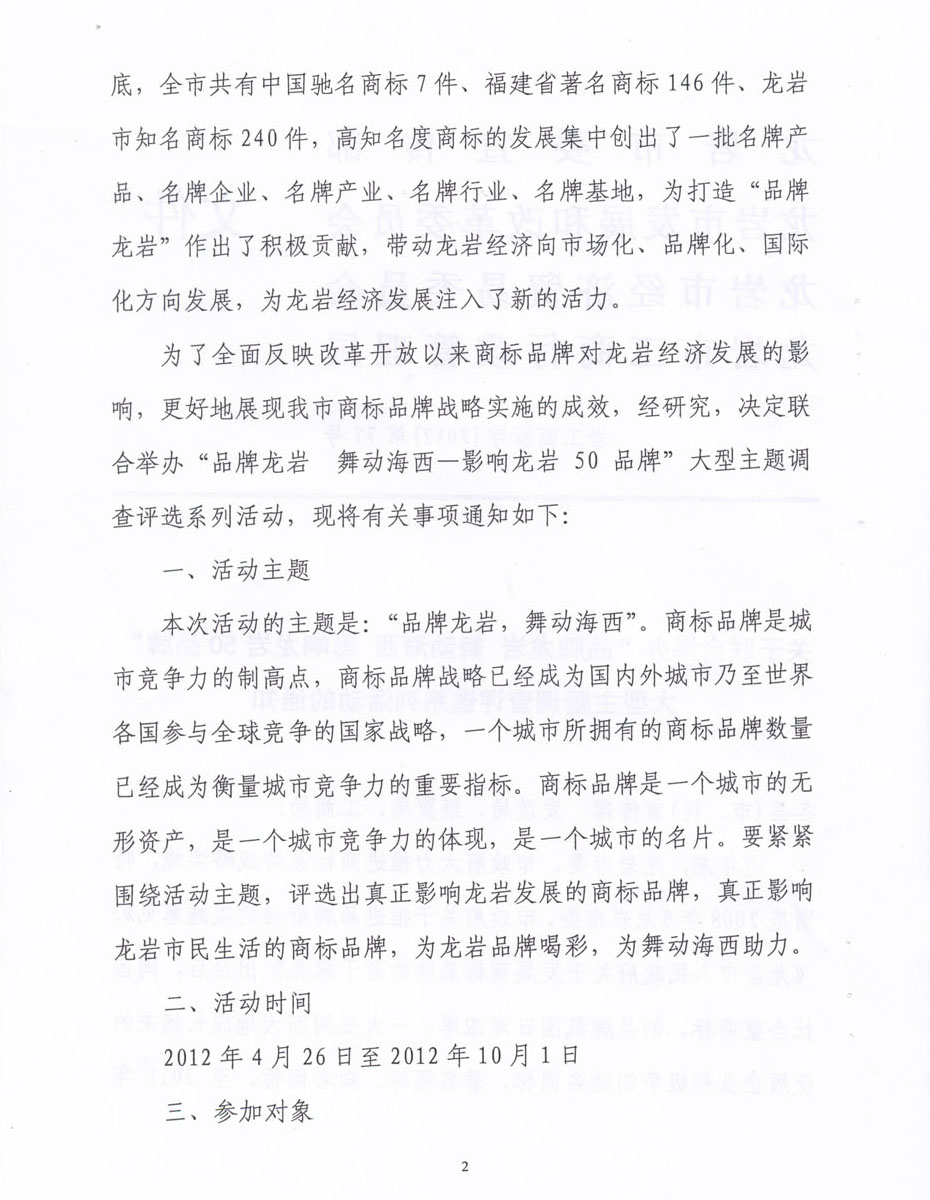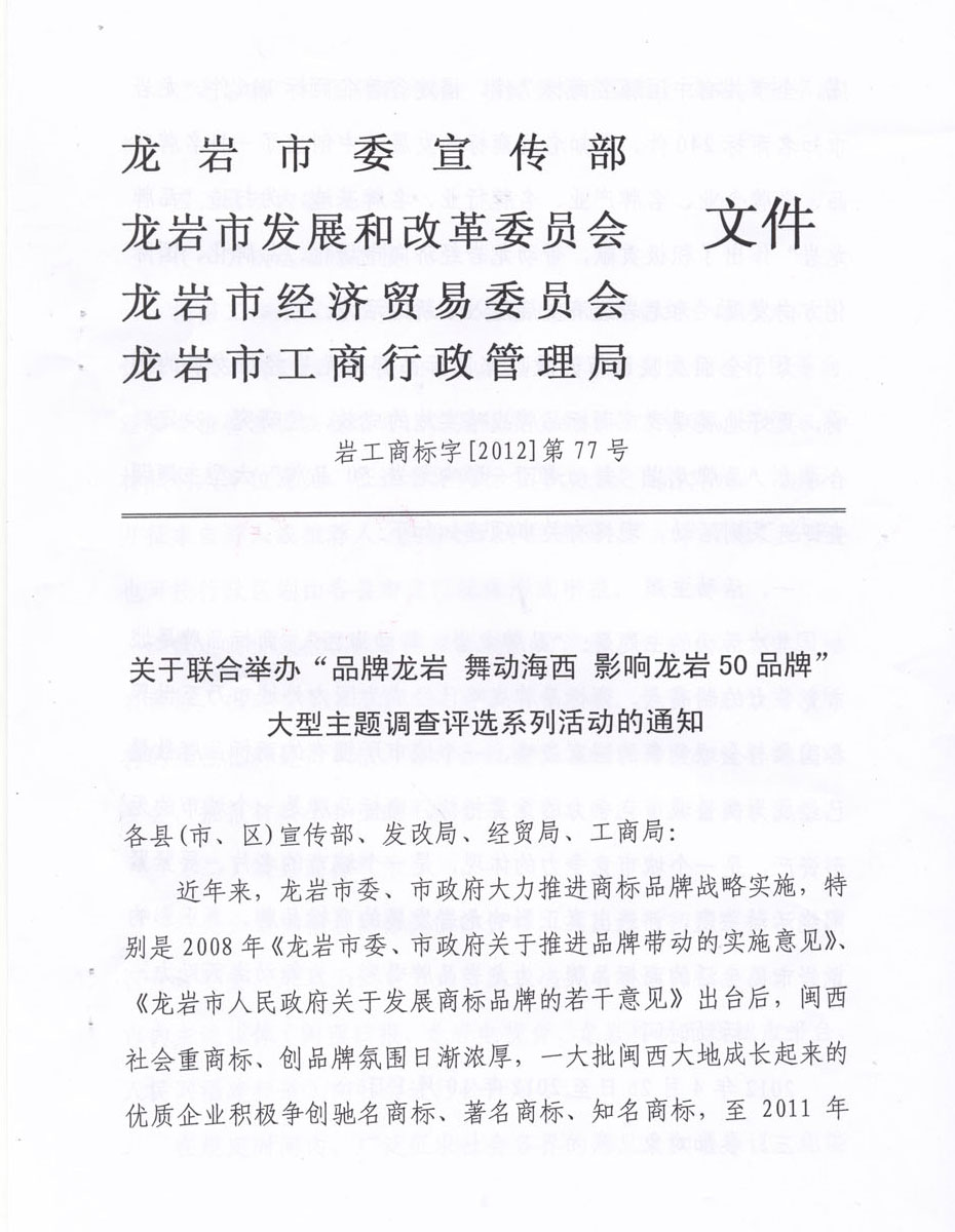 您當(dāng)前的位置:首頁(yè) > 新聞動(dòng)態(tài) > 關(guān)于聯(lián)合舉辦“品牌龍巖 舞動(dòng)海西 影響龍巖50品牌”大型主題調(diào)查評(píng)選系列活動(dòng)的通知