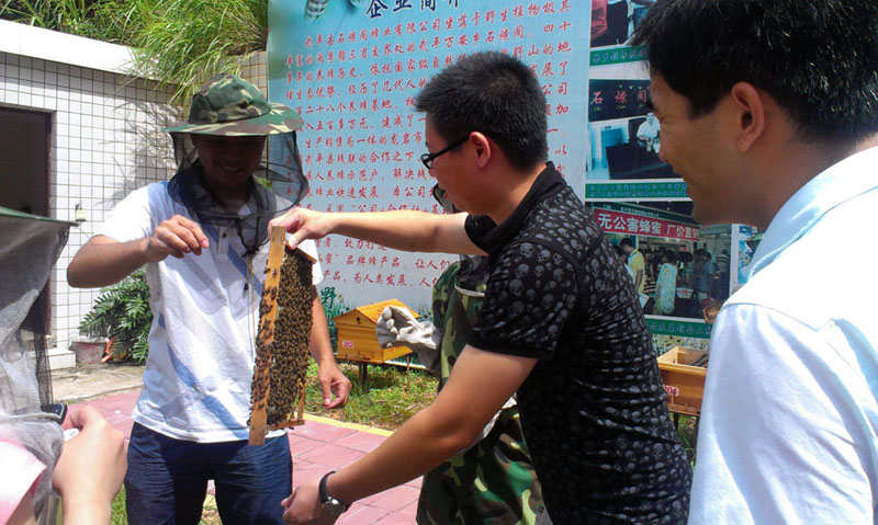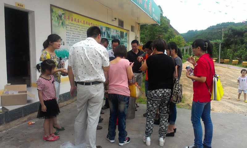 我們第一站來(lái)到YBC創(chuàng)業(yè)青年鐘亮生的武平石燎閣天然蜂業(yè),一進(jìn)門(mén),東道主鐘亮生就跟我們介紹蜂蜜的制作過(guò)程,一下就吸引了青年們的注意力,把他給包圍住了。聽(tīng)完介紹,青年們一一穿上了防蜂服,在師傅的帶領(lǐng)下采蜜、割蜜、耍蜜,忙的不亦樂(lè)乎。你看,小朋友多能干,自己制作期蜂蜜來(lái)了!大家都帶著親自制作的蜂蜜、蜂王漿滿載而歸啦!