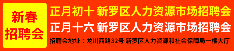 • 【招聘會名單】正月初十新羅區(qū)人力資源和社會保障局春季大中專畢業(yè)生供需見面暨雙向選擇招聘會