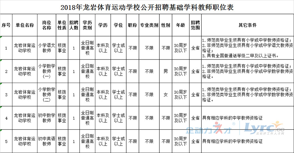 您當(dāng)前的位置:首頁 > 新羅區(qū)國有企事業(yè) > 2018年龍巖體育運動學(xué)校公開招聘基礎(chǔ)學(xué)科教師工作方案