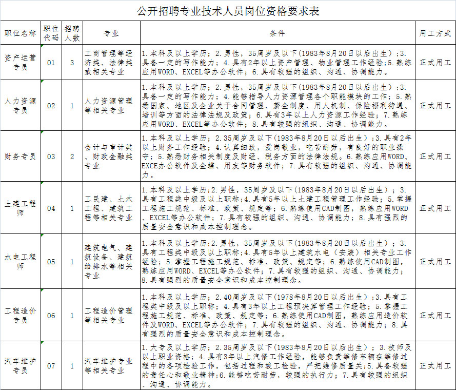 二、招聘基本條件