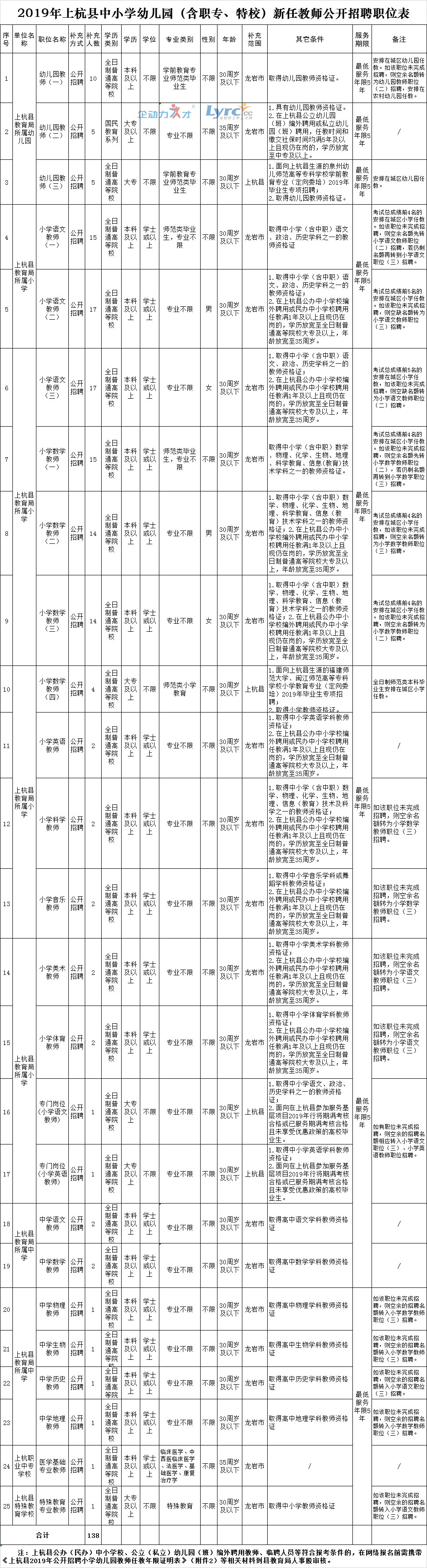 1. 2019年上杭縣中小學(xué)幼兒園(含職專(zhuān)、特校)新任教師公開(kāi)招聘職位表