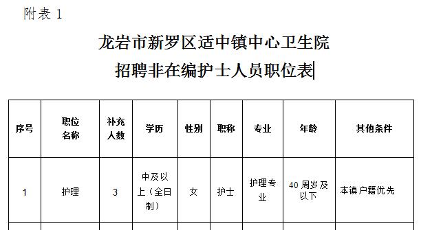附件1:龍巖市新羅區(qū)適中鎮(zhèn)中心衛(wèi)生院招聘非在編護(hù)士人員職位表(點(diǎn)擊下載)