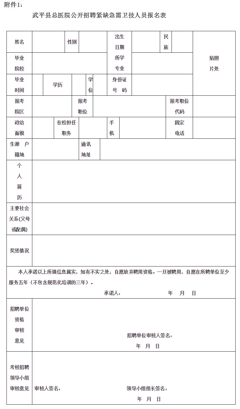 1.武平縣總醫(yī)院公開(kāi)招聘緊缺急需衛(wèi)技人員報(bào)名表