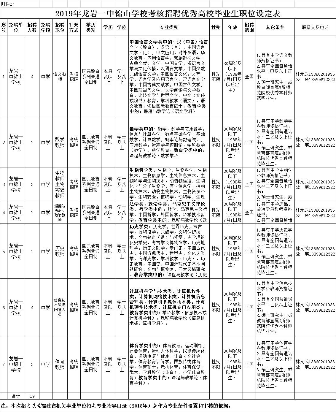 2.2019年龍巖一中錦山學(xué)?己苏衅竷(yōu)秀高校畢業(yè)生職位設(shè)定表