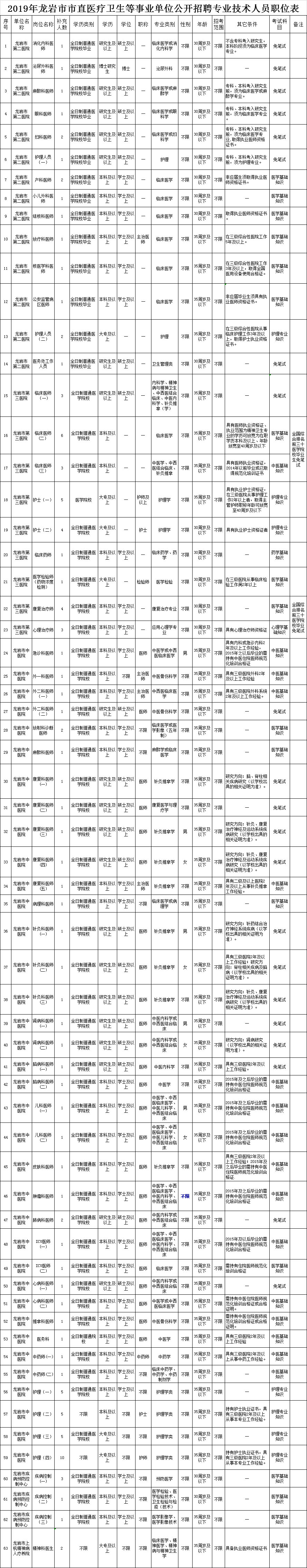 1.2019年龍巖市市直醫(yī)療衛(wèi)生等事業(yè)單位公開招聘專業(yè)技術(shù)人員職位表