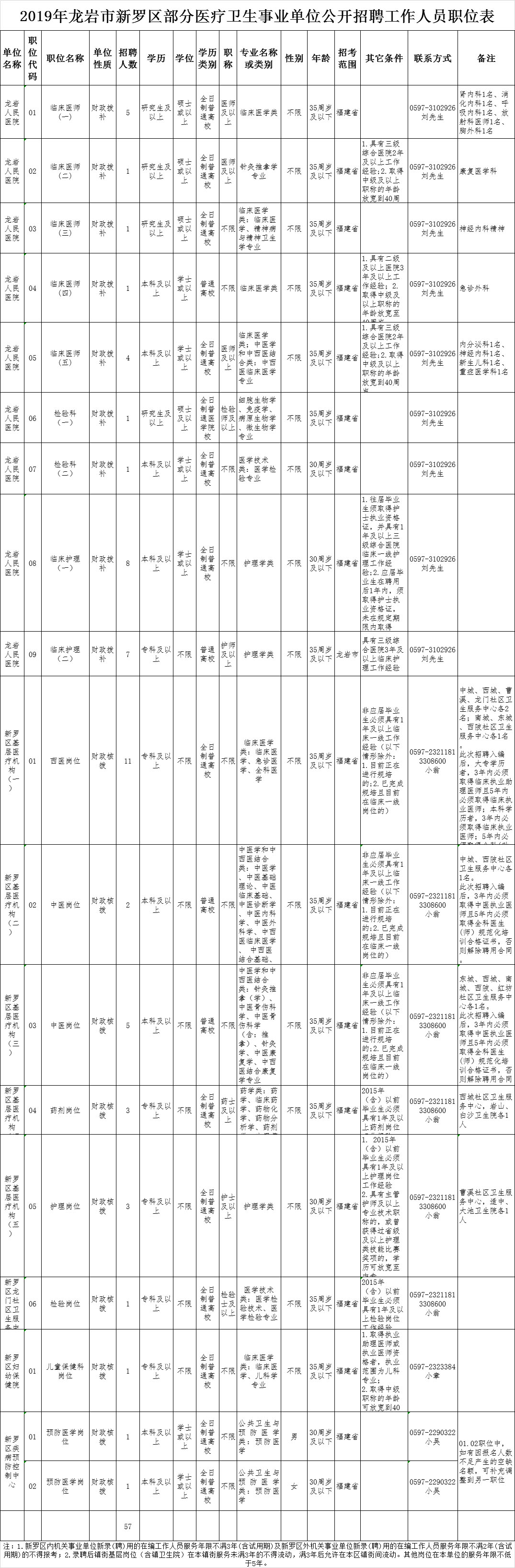 1.《2019年龍巖市新羅區(qū)部分醫(yī)療衛(wèi)生事業(yè)單位公開招聘專業(yè)技術(shù)人員職位表》