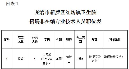 附件1:龍巖市新羅區(qū)紅坊鎮(zhèn)衛(wèi)生院公開招聘非在編工作人員職位表