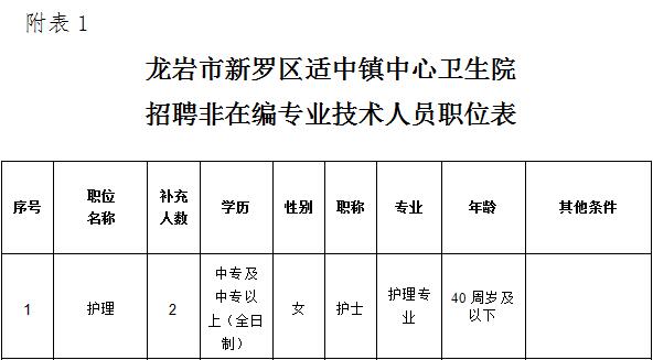 《龍巖市新羅區(qū)適中鎮(zhèn)中心衛(wèi)生院公開招聘非在編護(hù)士人員職位表》(點擊下載)