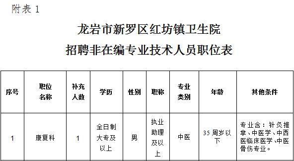 附件:1.《龍巖市新羅區(qū)紅坊鎮(zhèn)衛(wèi)生院公開招聘非在編工作人員職位表》