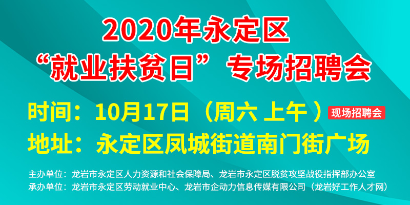 • 【10月17永定招聘會】2020年永定區(qū)就業(yè)扶貧日專場招聘會