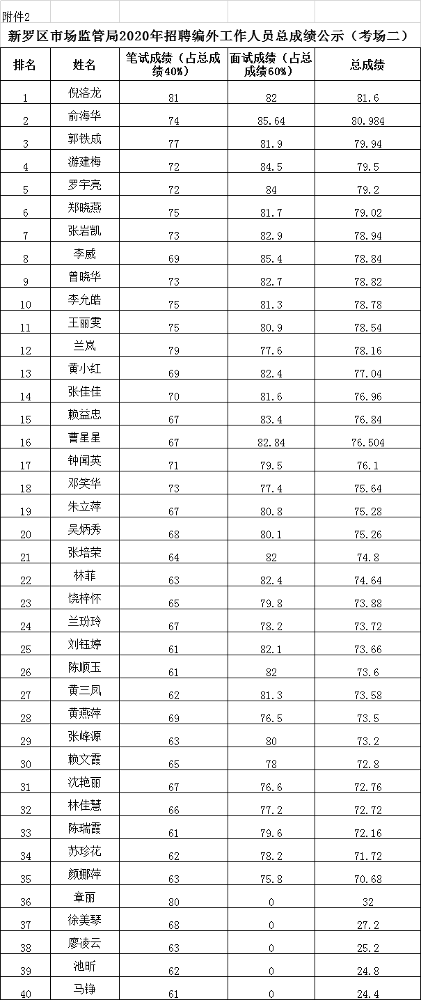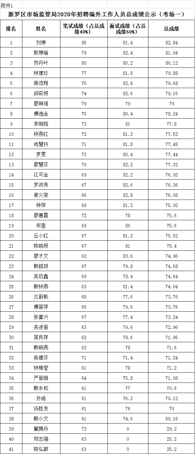 您當(dāng)前的位置:首頁(yè) > 新羅區(qū)國(guó)有企事業(yè) > 【總成績(jī)公示】龍巖市新羅區(qū)市場(chǎng)監(jiān)督管理局2020年招聘編外工作人員總成績(jī)公示