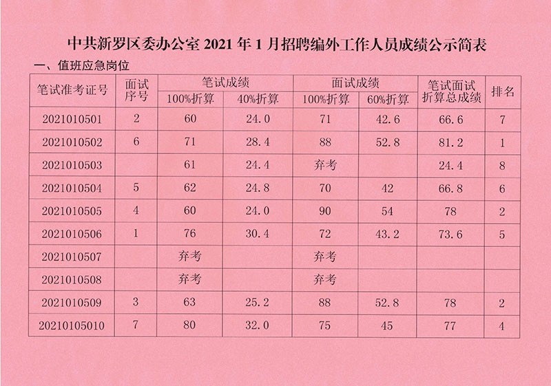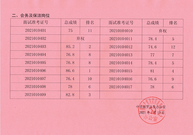 您當(dāng)前的位置:首頁 > 新羅區(qū)國有企事業(yè) > 【成績公示】中共新羅區(qū)委辦公室2021年1月招聘編外工作人員成績公示