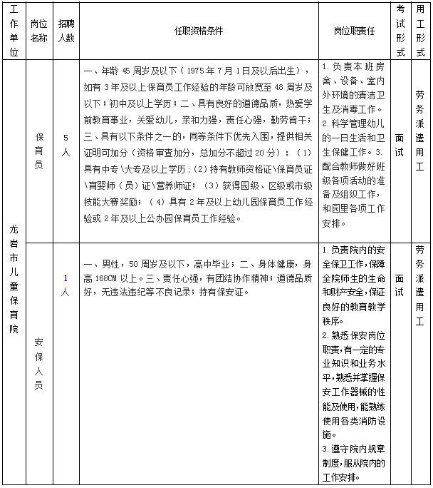 (一)聘用:體檢合格的應(yīng)聘人員,與龍巖市人力資源服務(wù)有限公司簽訂勞動(dòng)合同,再派遣至龍巖市兒童保育院工作。