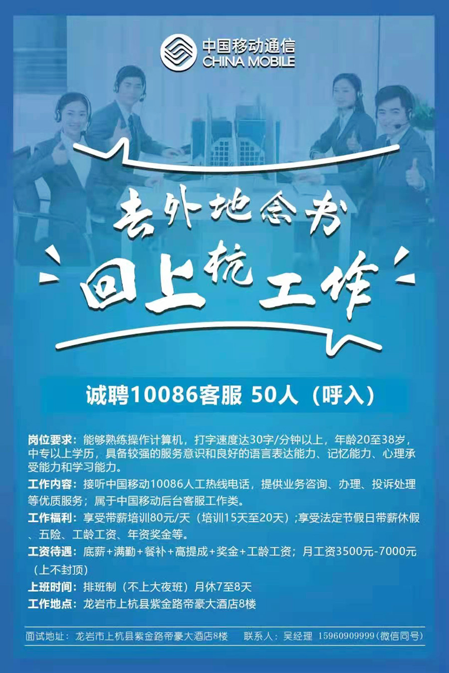 您當(dāng)前的位置:首頁(yè) > 新聞動(dòng)態(tài) > 【上杭】誠(chéng)聘10086客服100人