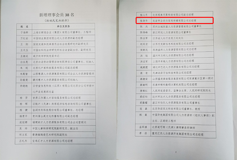 中國地方人力資源服務(wù)產(chǎn)業(yè)聯(lián)盟(中國地方人才網(wǎng)聯(lián)盟)常務(wù)理事單位、中國勞動學(xué)會新增理事會員:龍巖市企動力信息傳媒有限公司 總經(jīng)理 張勁華參加了本次會議。