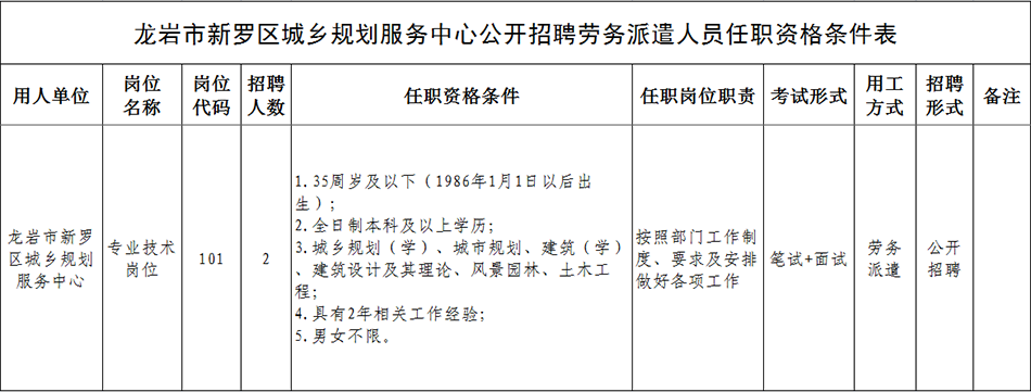(六)本公告僅適用于本次公開招聘工作,未盡事宜由龍巖人才發(fā)展集團有限公司和龍巖市新羅區(qū)城鄉(xiāng)規(guī)劃服務(wù)中心負責(zé)解釋,必要時另行補充通知。