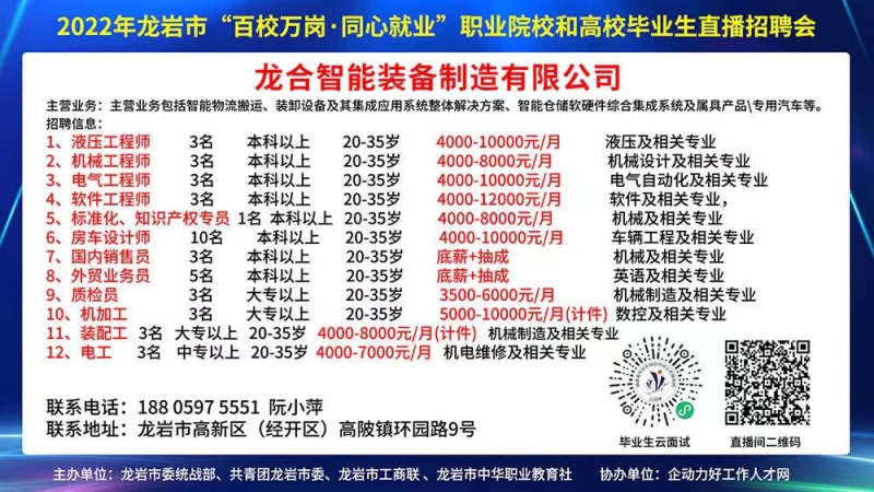 • 2022年龍巖市“百校萬崗 同心就業(yè)”職業(yè)院校和高校畢業(yè)生直播招聘會成功舉辦