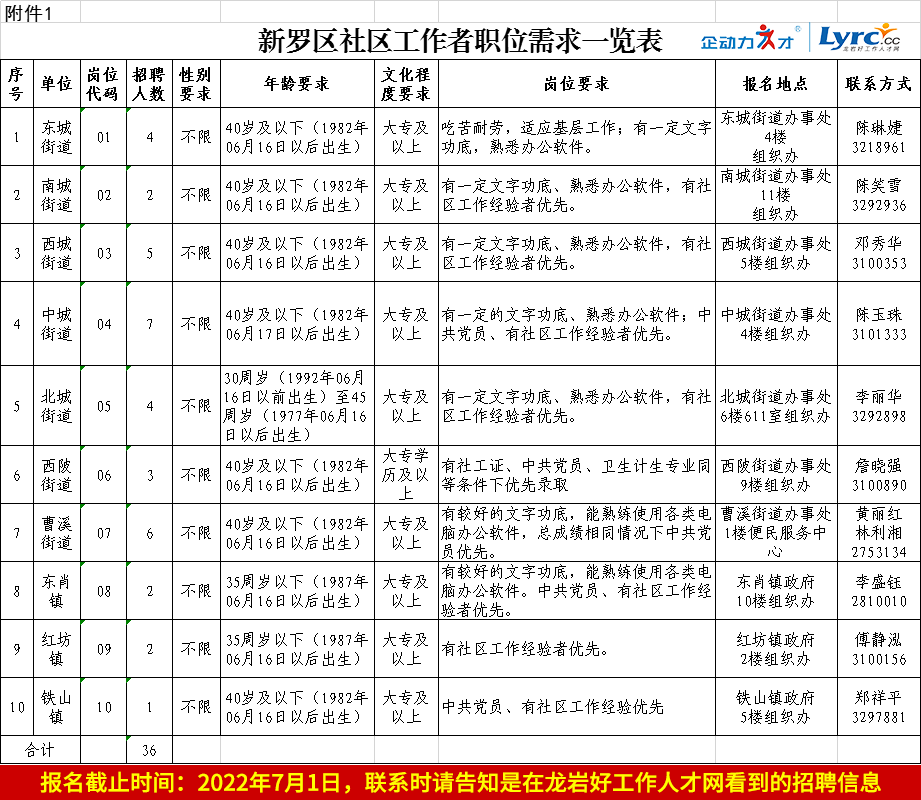 附件1:新羅區(qū)社區(qū)工作者職位需求一覽表