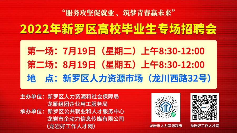 • 【7月19日參會(huì)企業(yè)名單】2022年新羅區(qū)高校畢業(yè)生專場(chǎng)招聘會(huì)【第一場(chǎng):7月19日】