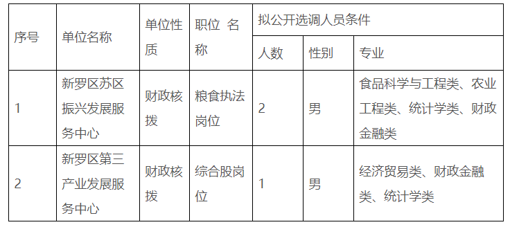 請注意,新羅區(qū)發(fā)展和改革局下屬事業(yè)單位公開選調(diào)工作人員,報(bào)考者專業(yè)不限條件:在發(fā)改(糧食)、統(tǒng)計(jì)、工信、商務(wù)、財(cái)政、農(nóng)業(yè)部門從事綜合性文字寫作的工作經(jīng)歷2年及以上。