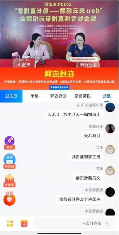 •  2022年10月12日下午,由龍巖市永定區(qū)人力資源和社會保障局主辦,永定工業(yè)園區(qū)管委會、龍巖市永定區(qū)退役軍人事務局協(xié)辦,龍巖市永定區(qū)勞動就業(yè)服務中心及龍巖市企動力信息傳媒有限公司(龍巖好工作人才網(wǎng))承辦的2022年永定區(qū)“dou來云招聘 局長直播季”暨金秋專場直播帶崗招聘會圓滿完成。