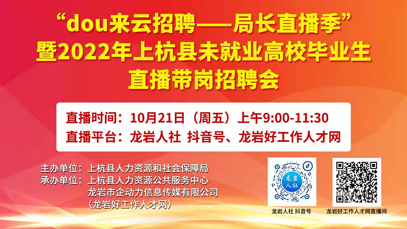 • “dou 來云招聘--局長直播季”暨2022年上杭縣未就業(yè)高校畢業(yè)生直播帶崗招聘會(huì)圓滿完成