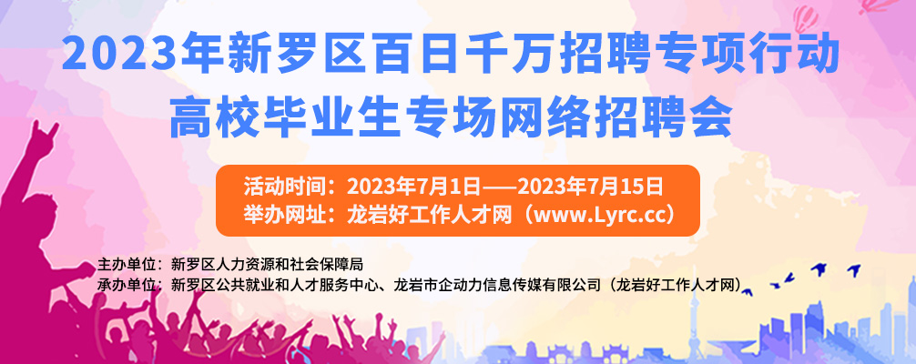 • 2023年新羅區(qū)百日千萬招聘專項行動高校畢業(yè)生專場網(wǎng)絡(luò)招聘會