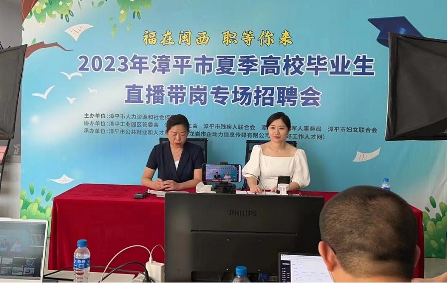 •   7月12日,由漳平市人力資源和社會(huì)保障局主辦,漳平工業(yè)園區(qū)管委會(huì)、漳平市總工會(huì)、漳平市殘疾人聯(lián)合會(huì)、漳平市退役軍人事務(wù)局、漳平市婦女聯(lián)合會(huì)協(xié)辦,漳平市公共就業(yè)和人才服務(wù)中心、龍巖市企動(dòng)力信息傳媒有限公司(龍巖好工作人才網(wǎng))承辦的2023年漳平市夏季高校畢業(yè)生直播帶崗專場(chǎng)招聘會(huì)成功舉辦。