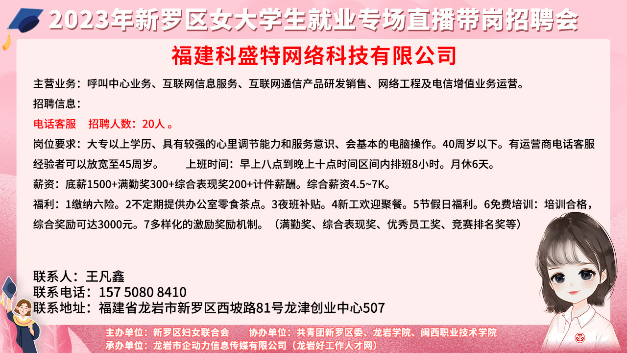 您當前的位置:首頁 > 新聞動態(tài) > 2023年新羅區(qū)女大學生就業(yè)專場直播帶崗招聘會