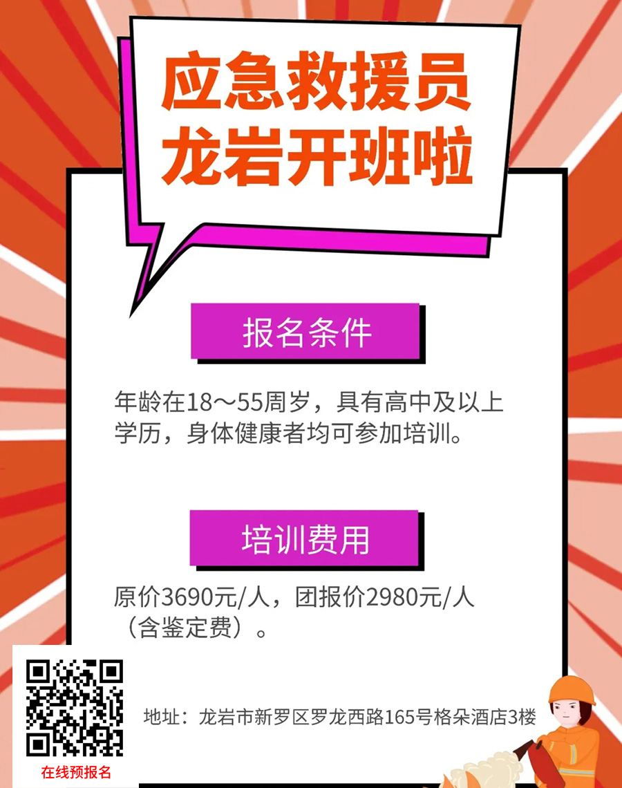 您當(dāng)前的位置:首頁(yè) > 培訓(xùn)信息 > 【應(yīng)急救援員】緊缺工種龍巖招生啦!心動(dòng)不如心動(dòng)!