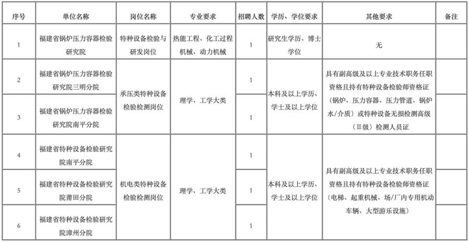福建省特種設備檢驗研究院公開招聘高層次人才6名