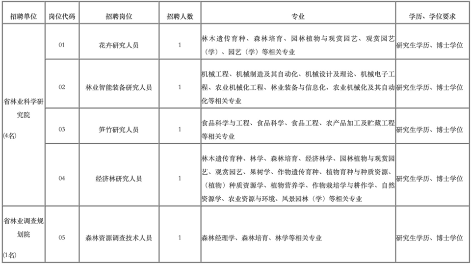 福建省林業(yè)局直屬事業(yè)單位公開招聘博士研究生5名