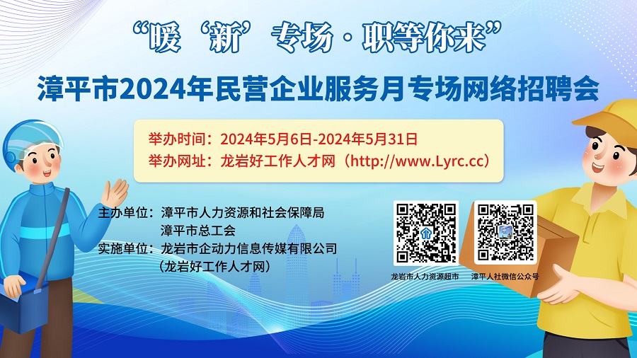 • “暖‘新’專場(chǎng) ·職等你來(lái)” 漳平市2024年民營(yíng)企業(yè)服務(wù)月專場(chǎng)網(wǎng)絡(luò)招聘會(huì)