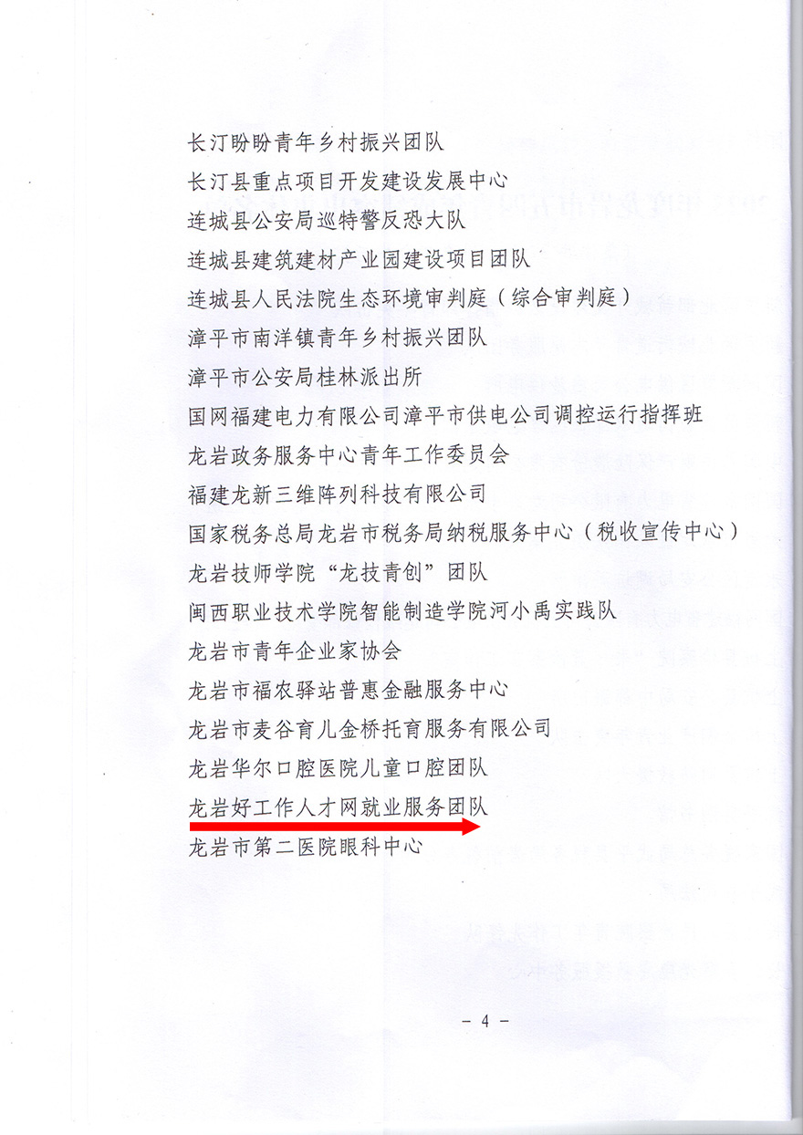 • 喜報|龍巖好工作人才網(wǎng)就業(yè)服務(wù)團隊入選2023年度龍巖市五四青年成績突出集體