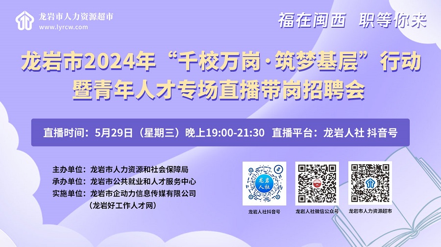 • 龍巖市2024年“千校萬(wàn)崗·筑夢(mèng)基層” 行動(dòng)暨青年人才專場(chǎng)直播帶崗招聘會(huì)成功舉辦