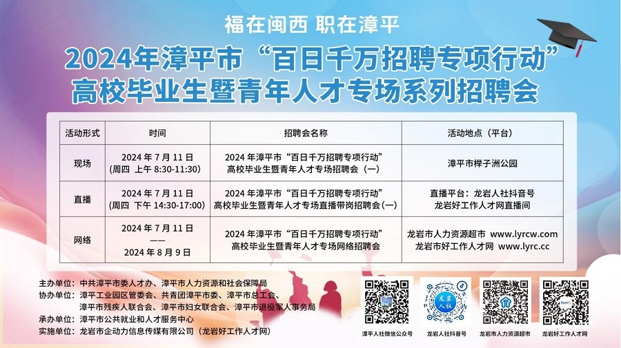 • 【7月19日】2024年新羅區(qū)“百日千萬招聘專項(xiàng)行動(dòng)”高校畢業(yè)生暨青年人才招聘會(huì)