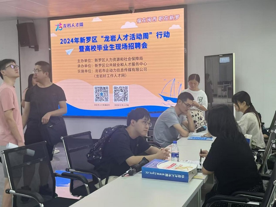 •   為深入貫徹落實(shí)黨中央、國(guó)務(wù)院關(guān)于促進(jìn)高校畢業(yè)生等青年就業(yè)工作決策部署,強(qiáng)化高校畢業(yè)生等青年群體就業(yè)服務(wù),持續(xù)推進(jìn)實(shí)施“才聚龍巖”行動(dòng)計(jì)劃,8月19日上午新羅區(qū)人力資源和社會(huì)保障局舉辦的2024年新羅區(qū)“龍巖人才活動(dòng)周”行動(dòng)暨高校畢業(yè)生現(xiàn)場(chǎng)招聘會(huì)在新羅區(qū)人力資源市場(chǎng)舉行。