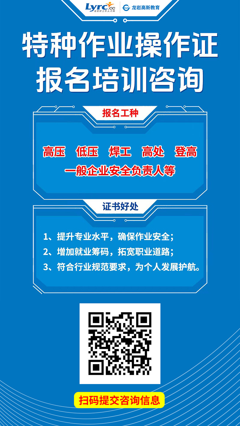 您當(dāng)前的位置:首頁 > 新聞動態(tài) > 龍巖特種作業(yè)操作證,電工證,焊工證,高空作業(yè)證,報名培訓(xùn)咨詢火熱進(jìn)行中...