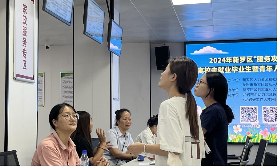 •   為深入貫徹落實(shí)黨中央、國(guó)務(wù)院關(guān)于促進(jìn)高校畢業(yè)生等青年就業(yè)工作決策部署,強(qiáng)化高校畢業(yè)生等青年群體就業(yè)服務(wù),暢通求職招聘渠道,9月19日上午,新羅區(qū)人力資源和社會(huì)保障局舉辦的2024年新羅區(qū)“服務(wù)攻堅(jiān)促就業(yè)”離校未就業(yè)畢業(yè)生暨青年人才現(xiàn)場(chǎng)招聘會(huì)在新羅區(qū)人力資源市場(chǎng)舉行。