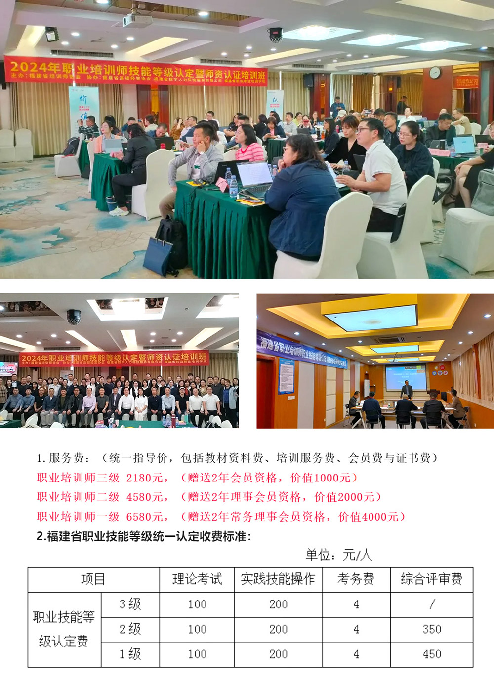 1.證書政府授權(quán)、官方認(rèn)可:學(xué)員評(píng)價(jià)合格將取得由政府認(rèn)可、國(guó)家人社部官網(wǎng)驗(yàn)證的職業(yè)培訓(xùn)師職業(yè)技能等級(jí)證書,證書是目前政府唯一認(rèn)可的職業(yè)培訓(xùn)師等級(jí)證書,解決了廣大培訓(xùn)師參與政府采購(gòu)與國(guó)有企業(yè)培訓(xùn)項(xiàng)目的講師資格與有效身份的痛點(diǎn)。2.課程實(shí)戰(zhàn)實(shí)用、專業(yè)系統(tǒng):通過(guò)培訓(xùn)讓培訓(xùn)師了解職業(yè)綜合素質(zhì)能力要求,掌握培訓(xùn)項(xiàng)目需求調(diào)研與項(xiàng)目開(kāi)發(fā)方法,提升教學(xué)設(shè)計(jì)能力并運(yùn)用成人學(xué)習(xí)原理和科學(xué)標(biāo)準(zhǔn)進(jìn)行高效教學(xué),強(qiáng)化教學(xué)組織與教學(xué)質(zhì)量管理能力,掌握技能人才培養(yǎng)、人才梯隊(duì)建設(shè)咨詢服務(wù)能力,全面提升培訓(xùn)講師的綜合能力與職業(yè)競(jìng)爭(zhēng)力。3.學(xué)員師資服務(wù)、市場(chǎng)推廣:取得等級(jí)證書的優(yōu)秀學(xué)員,經(jīng)協(xié)會(huì)評(píng)審合格頒發(fā)福建省職業(yè)培訓(xùn)師技能等級(jí)評(píng)價(jià)授權(quán)認(rèn)證講師證書,納入?yún)f(xié)會(huì)培訓(xùn)師認(rèn)證師資庫(kù),作為全省及全國(guó)范圍內(nèi)開(kāi)展職業(yè)培訓(xùn)師等級(jí)認(rèn)定培訓(xùn)班的授課師資推薦到全省的合作培訓(xùn)機(jī)構(gòu)與企事業(yè)單位開(kāi)展培訓(xùn)授課。4.會(huì)員磨課沙龍、強(qiáng)化技能:報(bào)名學(xué)員贈(zèng)送兩年會(huì)員資格,頒發(fā)會(huì)員證書,享有協(xié)會(huì)相應(yīng)等級(jí)會(huì)員權(quán)益,免費(fèi)參加協(xié)會(huì)及合作基地組織的講師磨課沙龍、主題論壇、專題沙龍、講師大賽等會(huì)員專屬活動(dòng)。5.學(xué)員繼續(xù)教育、個(gè)稅福利:取得職業(yè)培訓(xùn)師證書學(xué)員,按國(guó)家相關(guān)稅收政策享有個(gè)人所得稅3600元額度專項(xiàng)退稅權(quán)益。(以最新政策為準(zhǔn))6.培訓(xùn)政策支持、見(jiàn)證補(bǔ)貼:取證人員享有省市人社部門技能人才見(jiàn)證補(bǔ)貼培訓(xùn)政策,根據(jù)各地政策執(zhí)行的不同,享有培訓(xùn)費(fèi)與考試費(fèi)補(bǔ)貼,享有專業(yè)培訓(xùn)服務(wù)的同時(shí),大大降低學(xué)員學(xué)習(xí)考證的費(fèi)用成本。(以最新政策為準(zhǔn))【符合條件的可以申請(qǐng)政府補(bǔ)貼:1500元(三級(jí)),2000元(二級(jí)),3000元(一級(jí))】
