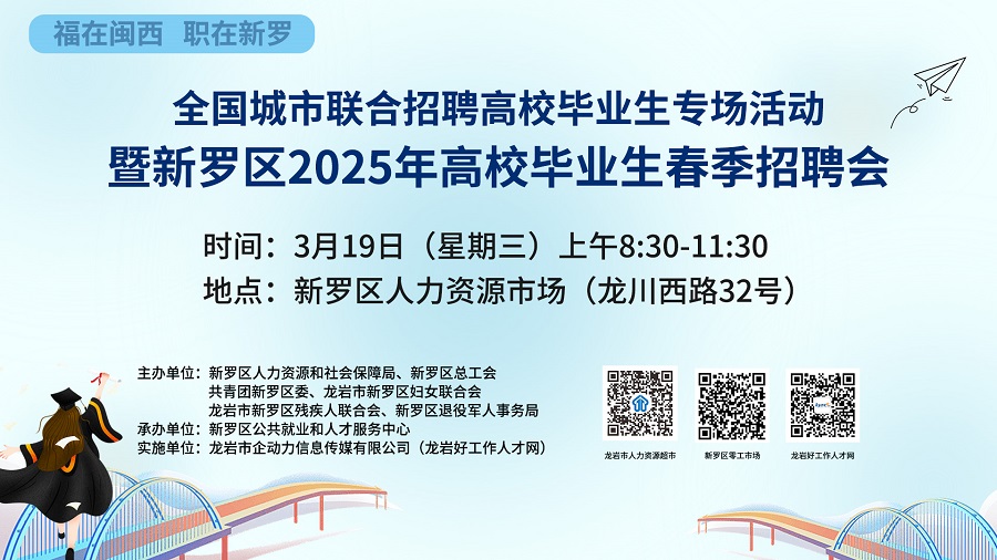 - 【3月19日】全國城市聯(lián)合招聘高校畢業(yè)生專場活動暨新羅區(qū)2025年高校畢業(yè)生春季招聘會
