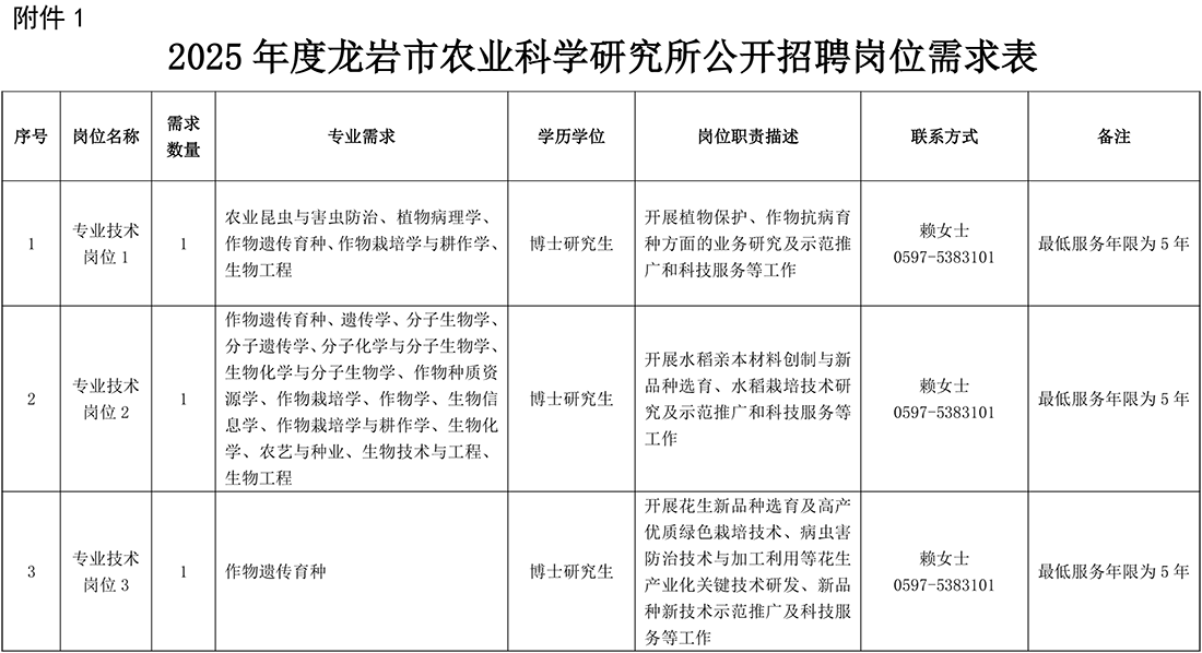 (1)《2025年龍巖市農(nóng)業(yè)科學(xué)研究所公開招聘工作人員報名表》;