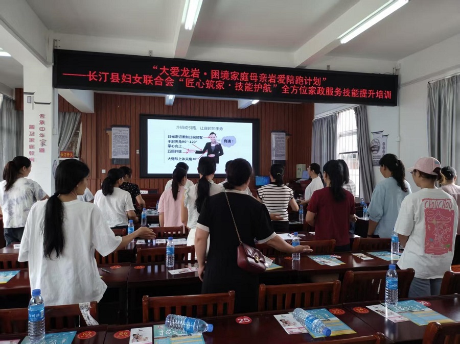 - “大愛(ài)龍巖·困境家庭母親巖愛(ài)陪跑計(jì)劃”——女性 就業(yè)創(chuàng)業(yè)扶持項(xiàng)目暨長(zhǎng)汀縣婦女聯(lián)合會(huì)“匠心筑家?技能護(hù)航”全方位家政服務(wù)技能提升培訓(xùn)成功舉辦