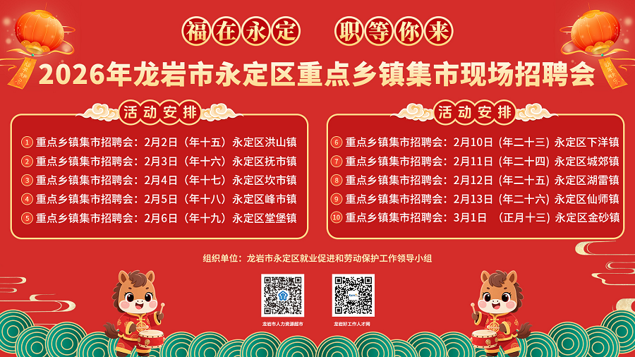 【正月初八】“春風(fēng)送崗促就業(yè) 真情相助暖民心”2026年龍巖市中心城區(qū)春風(fēng)行動(dòng)暨就業(yè)援助季現(xiàn)場招聘會(huì)