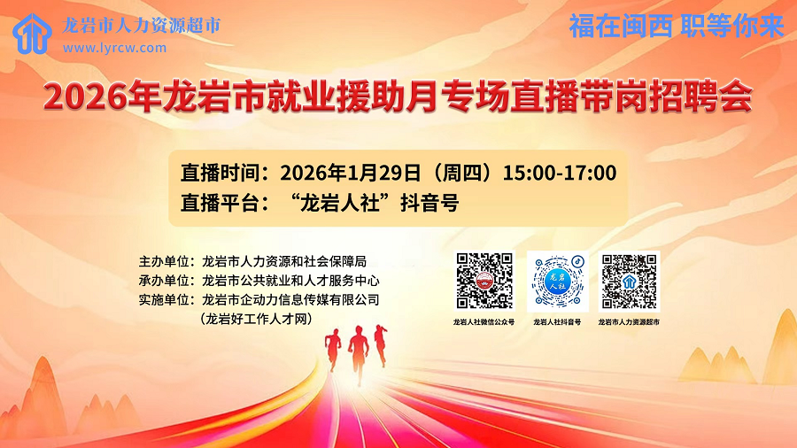 “福在閩西 職等你來”2026年龍巖市就業(yè)援助月專場直播帶崗招聘會(huì)