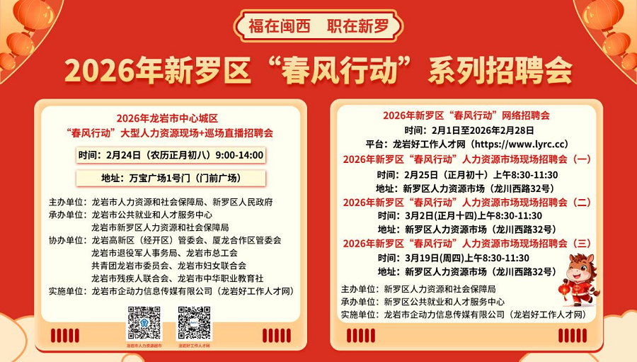 “才聚武平 職等你來(lái)”2026年武平縣春風(fēng)行動(dòng)系列招聘會(huì)