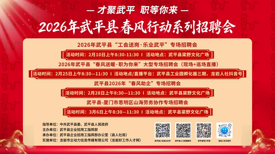 2026年武平縣“春風(fēng)送暖·職為你來” 大型專場招聘會(huì) (現(xiàn)場+巡場直播) |