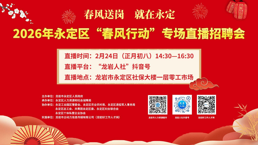 直播地點(diǎn):龍巖市永定區(qū)社保大樓一層零工市場(chǎng)