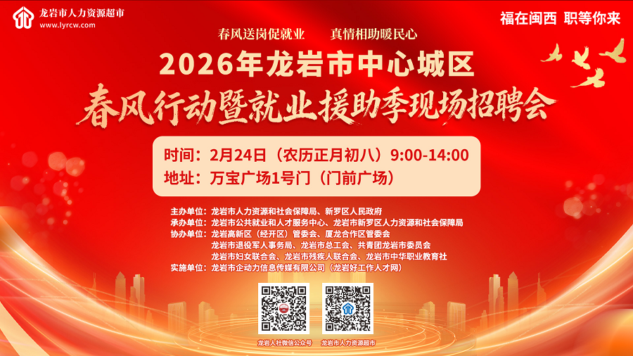詳情請訪問龍巖市人力資源超市網(wǎng)站(www.lyrcw.com)